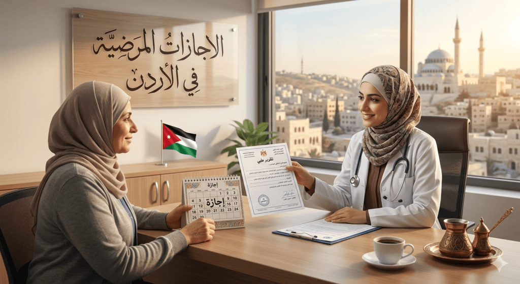 تستوجب الاجازات المرضية في الاردن تقديم تقرير طبي معتمد يثبت الحالة الصحية خلال مدة أقصاها ثماني وأربعين ساعة من بدء الغياب، وذلك لضمان توثيق الفترة قانونياً وحفظ حق الموظف في تقاضي أجره المعتاد دون تأخير أو خصومات غير مبررة.
